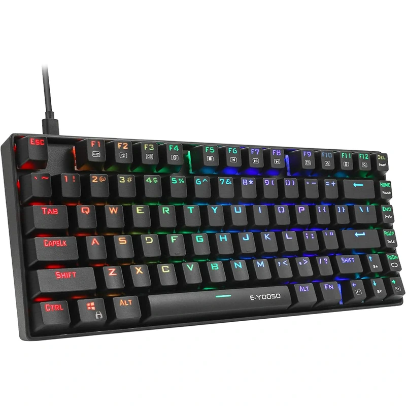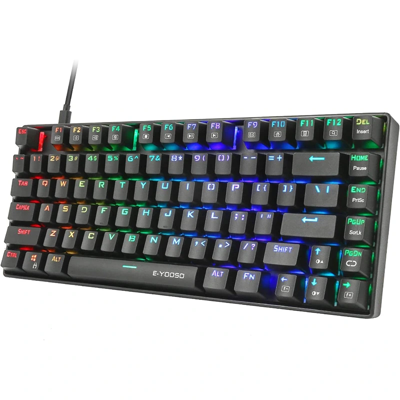 E-Yooso Z-88 PRO 60% კომპაქტური 81 კლავიატურა RGB მექანიკური ლურჯი გადამრთველი LED განათებული სათამაშო კლავიატურა, წყალგამძლე და აჩრდილის საწინააღმდეგო მახასიათებლებისთვის