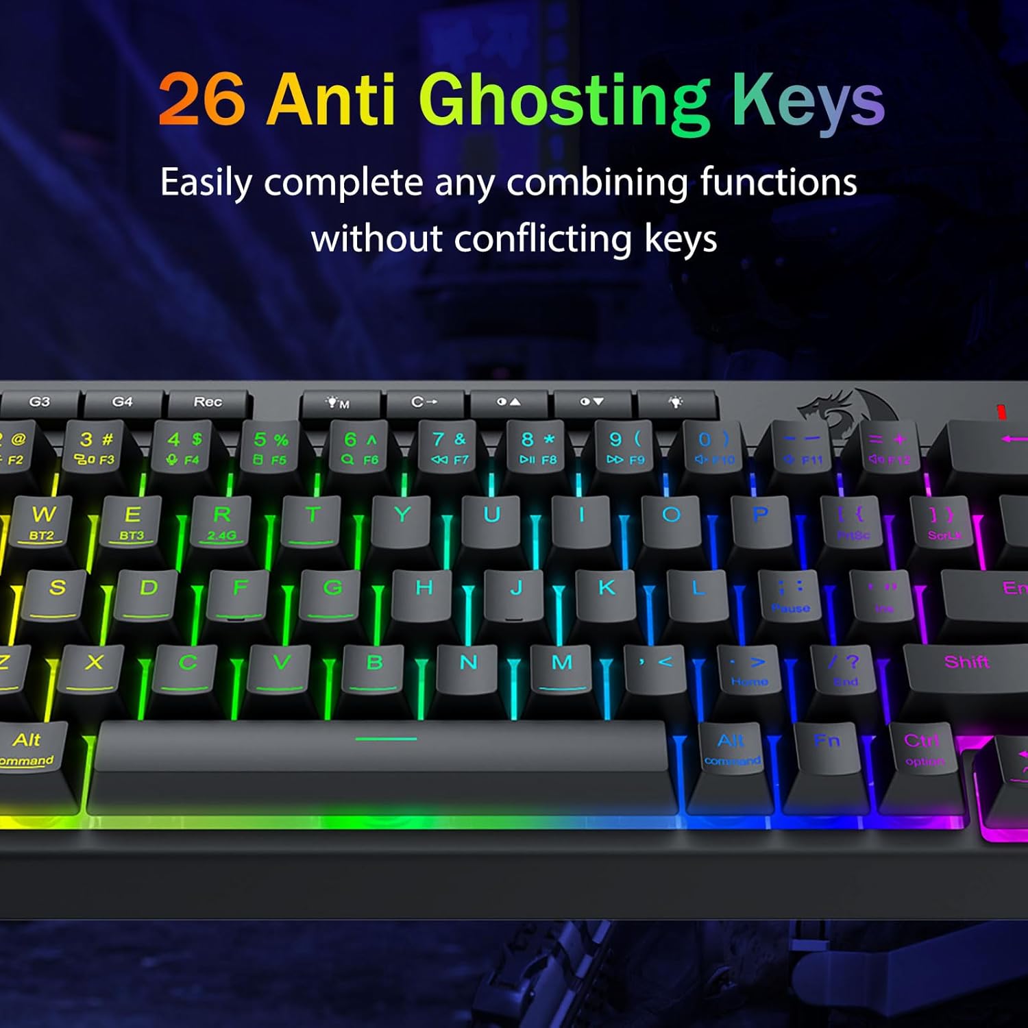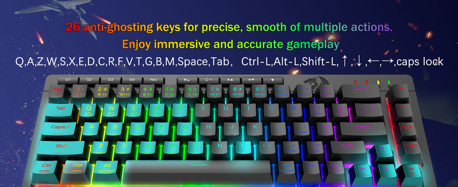 Pro-Grade თამაშის შესრულება და გამოყოფილი ფონური კონტროლი -მოჩვენებათა საწინააღმდეგო კლავიშები (კლავიშები ქვედა ხაზით), რომლებიც საშუალებას აძლევს 26 კლავიშს ერთდროულად იმუშაონ სწრაფი და ზუსტი თამაშის პასუხებისთვის ისე, როგორც თქვენ აპირებდით. სწრაფი წვდომის ღილაკები სიკაშკაშისთვის, განათების რეჟიმისთვის და თამაშის რეჟიმისთვის, რათა სწრაფად დაარეგულიროთ სიკაშკაშე, განათების პროფილები და ჩართოთ თამაშის რეჟიმი ღილაკის შეხებით.