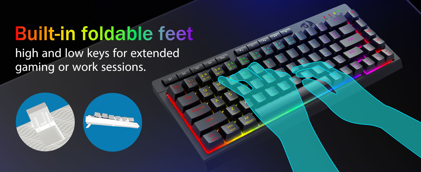 იმერსიული RGB განათება და რეგულირებადი გარემო -გაუშვით 16,8 მილიონი RGB ფერი 8 წინასწარ დაყენებული რეჟიმით (Rainbow Wave, Reactive Typing) + 6 DIY პროფილი. დაარეგულირეთ სიკაშკაშე მძლავრი სიკაშკაშიდან სტელსის რეჟიმში - იდეალურია გვიან ღამით თამაშებისთვის ან ოფისში გამოყენებისთვის.