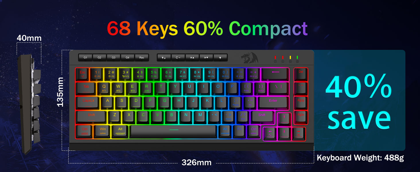 Black K519 Pro პორტატული უსადენო სათამაშო კლავიატურა Redragon-ისგან, რომელიც დამზადებულია Chuangquan-ის მიერ, წარმოადგენს პროფესიონალური დონის ინჟინერიას როგორც მოთამაშეებისთვის, ასევე პროფესიონალებისთვის. მისი მრავალმხრივი სამ რეჟიმის დიზაინი მხარს უჭერს სტაბილურ Bluetooth-ს, დაბალი ლატენტურობის 2.4 GHz უსადენო და USB-C სადენიანი კავშირებს, რაც შესაძლებელს ხდის სამ მოწყობილობას ერთდროულად გადართვას. კლავიატურა შეიცავს სპეციალურ მაკრო კლავიშებს, რომელთა სრულად მორგება შესაძლებელია ინტუიციური პროგრამული უზრუნველყოფის საშუალებით, რაც მომხმარებლებს საშუალებას აძლევს დაავალონ რთული ბრძანებები ან მალსახმობები გაუმჯობესებული პროდუქტიულობისა და თამაშის ეფექტურობისთვის. დინამიური RGB განათება მრავალჯერადი ეფექტებით ახდენს დაყენების პერსონალიზებას, ხოლო N-კლავიშის გადაბრუნება და მოჩვენებათა საწინააღმდეგო კლავიშის დაჭერა უზრუნველყოფს კლავიშის ყოველი დარტყმის ზუსტად დარეგისტრირებას ინტენსიური სესიების დროს.