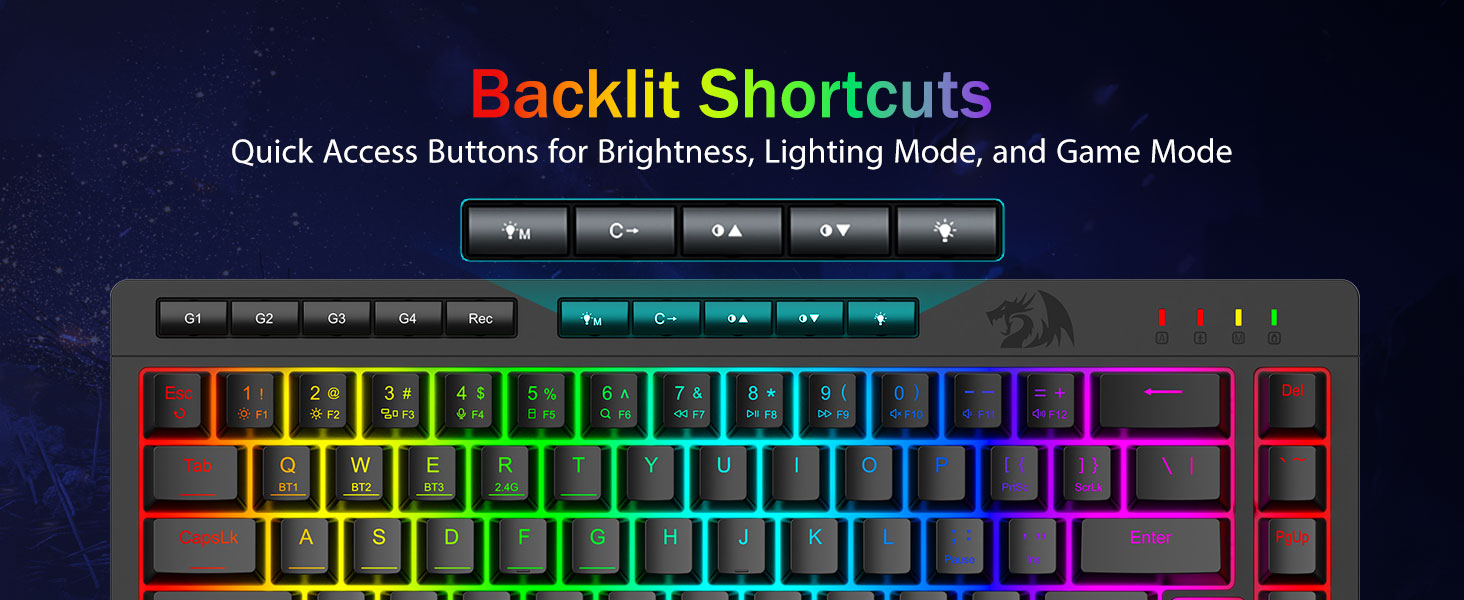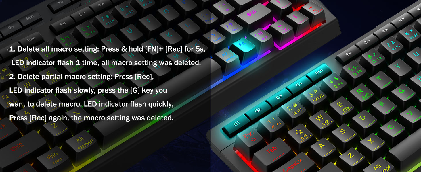 დააკონფიგურიროთ მაკროები, მარტივი კონტროლი -დაუყონებლივ დაპროგრამეთ 4 საბორტო მაკრო კლავიატურა (G1-G4) — პროგრამული უზრუნველყოფა არ არის საჭირო. ჩაწერეთ რთული კომბინაციები თამაშებისთვის, მალსახმობები პროდუქტიულობისთვის ან მედია ბრძანებები. ხელახლა განსაზღვრეთ თქვენი სამუშაო პროცესი წამებში. თქვენ ასევე შეგიძლიათ გამოიყენოთ პროგრამული უზრუნველყოფა ფუნქციების მოსარგებად, მაკროების შესაქმნელად, RGB განათების დასარეგულირებლად და მალსახმობების დასაყენებლად. პროგრამული უზრუნველყოფის ბმული: bit.ly/K524RGB-PRODriver