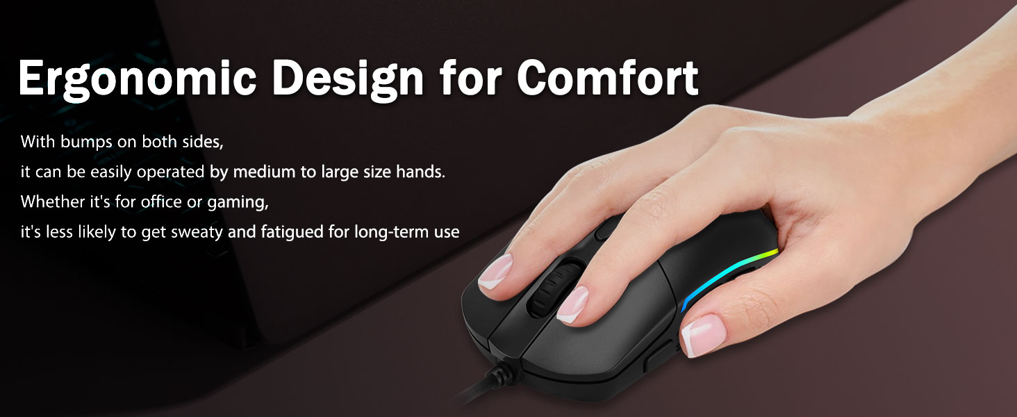 The Choice Of Die-hard Gamers- მიზნად ისახავთ, უმიზნებთ, ჭრით თუ უტევთ, პროფესიონალური სათამაშო მაუსი თქვენი საუკეთესო იარაღია! თაგვი იქნება თქვენი იდეალური პარტნიორი. იდეალურად თავსებადია Windows XP/Vista/Win7/Win8/Win10/ME/2000/Mac და ა.შ.