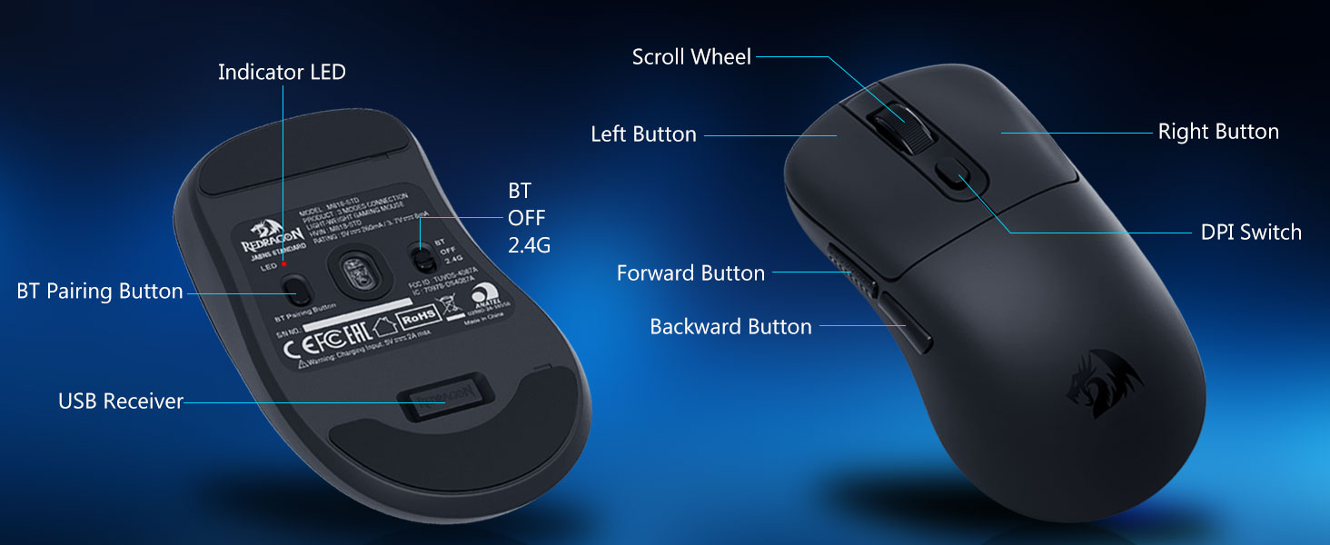 2.4 GHz უკაბელო რეჟიმი უზრუნველყოფს სტაბილურ და რეაგირებას შეყვანას, ამცირებს ჩამორჩენას და ინარჩუნებს თანმიმდევრულ კონტროლს სწრაფი ტემპის დროს.