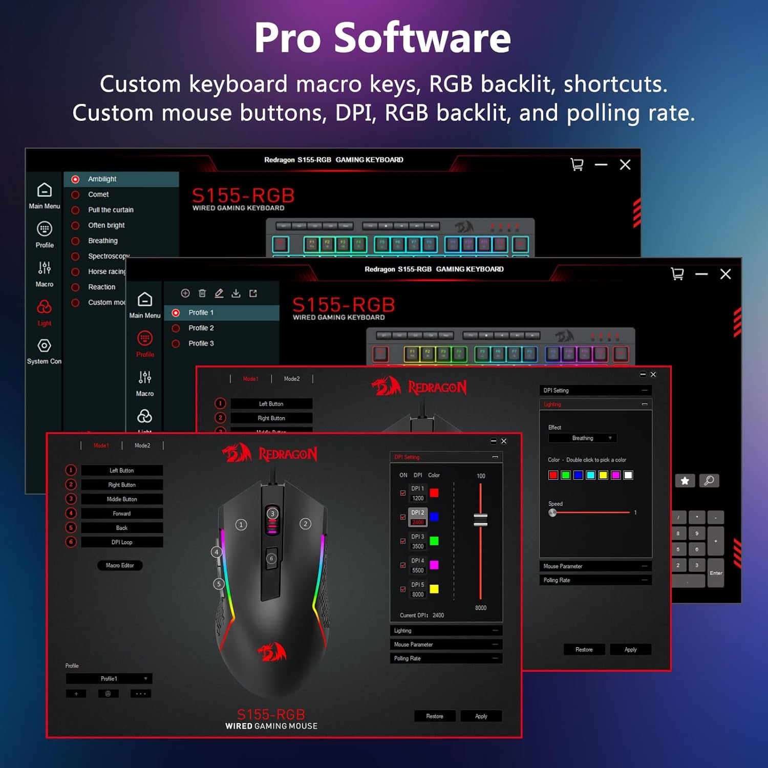【ფართო თავსებადობა】Windwos 11, Windows 10, Windows 8, Windows 7, Windows Vista ან Windows XP, შეზღუდული Mac OS კლავიატურის მხარდაჭერა. კარგად მუშაობს ყველა ძირითად კომპიუტერულ ბრენდთან და სათამაშო კომპიუტერებთან.კლავიატურის პროგრამული უზრუნველყოფა: bit.ly/S155-RGBKeyboard ;