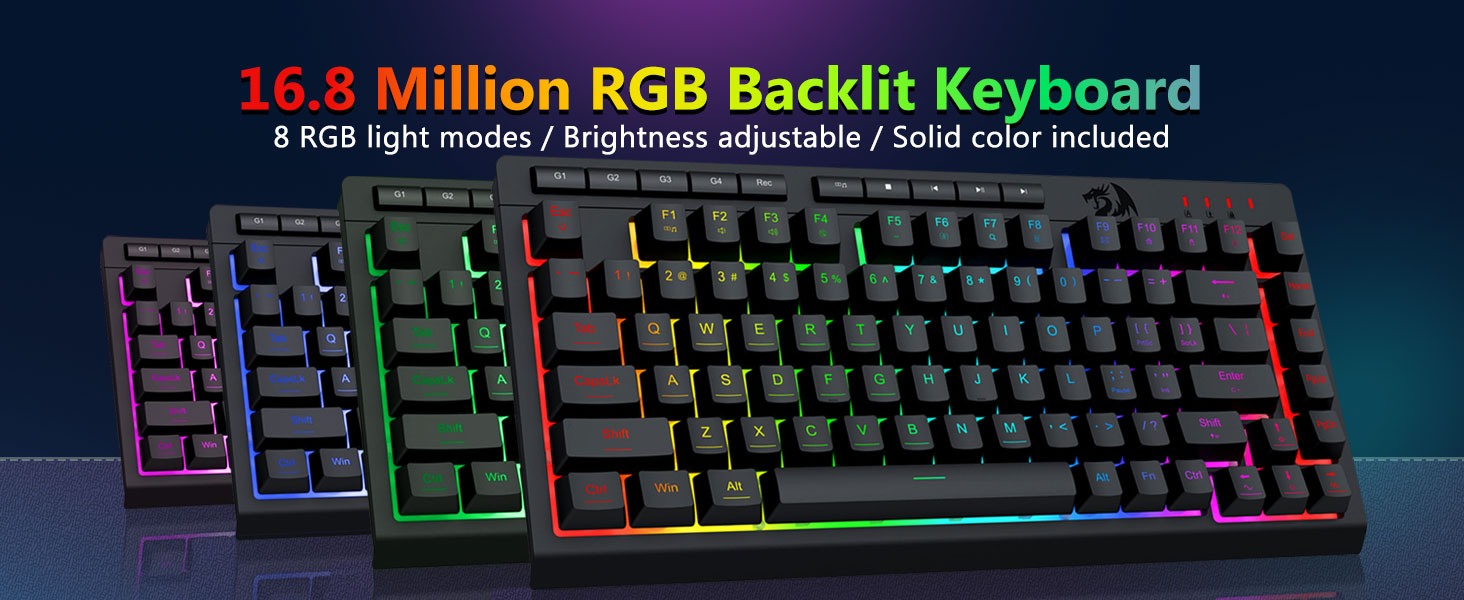 【RGB სათამაშო კლავიატურა და მაუსი】სათამაშო კლავიატურას აქვს 8 RGB განათების რეჟიმი ასარჩევად და სათამაშო მაუსს აქვს 8 განათების ეფექტი გადართვისთვის, ხოლო კლავიატურა შეიძლება დარეგულირდეს 4 დონის სიჩქარითა და სიკაშკაშეთ თქვენი უპირატესობის შესაბამისად. კლავიშები გთავაზობთ მკაფიო ერთგვაროვან განათებას. იქნება ეს ნაკრები ერთჯერადი განათებით, ცვალებადი შუქის ეფექტებით თუ საერთოდ არ არის განათებული, Redragon სათამაშო კლავიატურა და მაუსი დააკმაყოფილებს თქვენს საჭიროებებს!