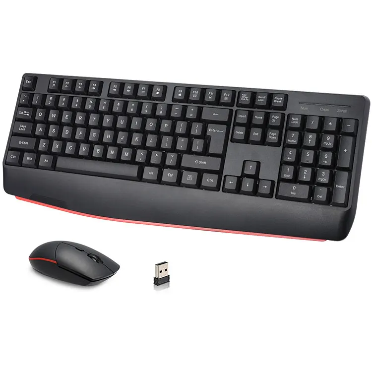 სრული ზომის 2.4G უსადენო კლავიატურის და მაუსის კომბინირებული მწარმოებელი, შეგიძლიათ დაისვენოთ