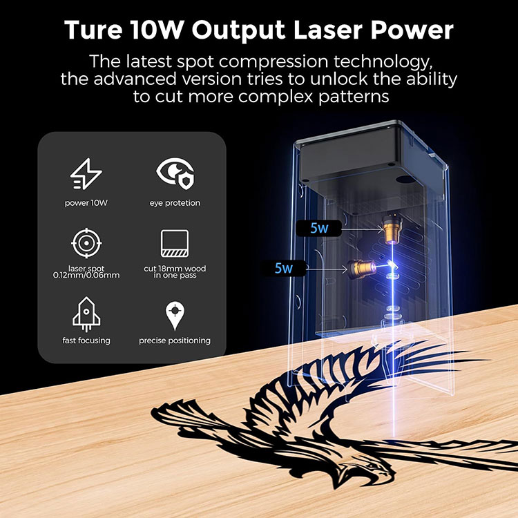 ლაზერული გრავიურა Falcon Pro 10W ლაზერული საჭრელი, Falcon Pro 10W ლაზერული საჭრელი პერსონალიზებული საჩუქრებისთვის, მაღალი სიზუსტის ლაზერული გრავიურა ჰაერის დამხმარე აპარატით, CNC მანქანა და ლაზერული გრავიურა ხის და ლითონისთვის, ქაღალდი, აკრილი, მინა