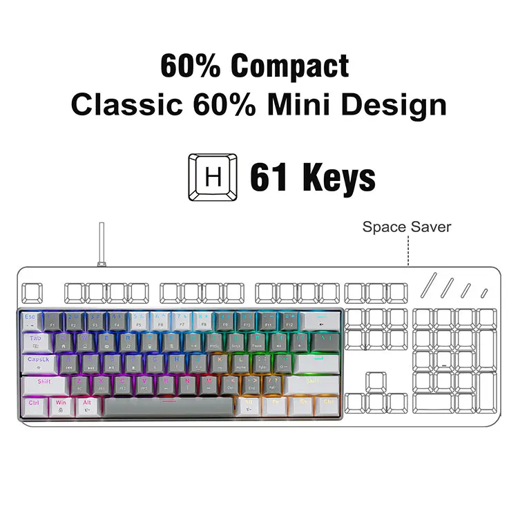 【პროცენტული კლავიატურის პორტატული დიზაინი】ამ პორტატული 60% მექანიკური სადენიანი სათამაშო აქვს შესანიშნავი ზომა და