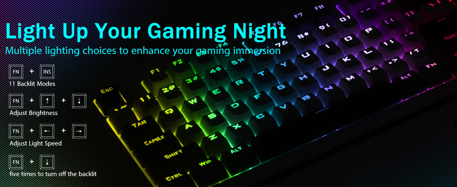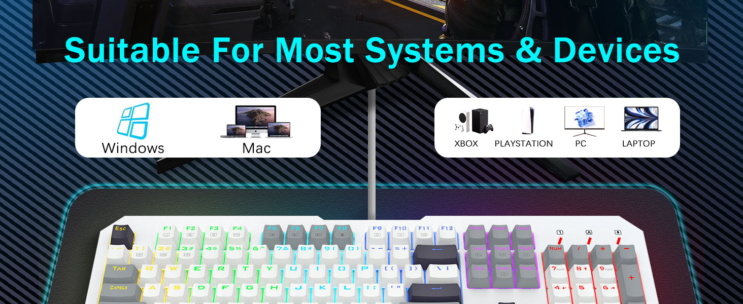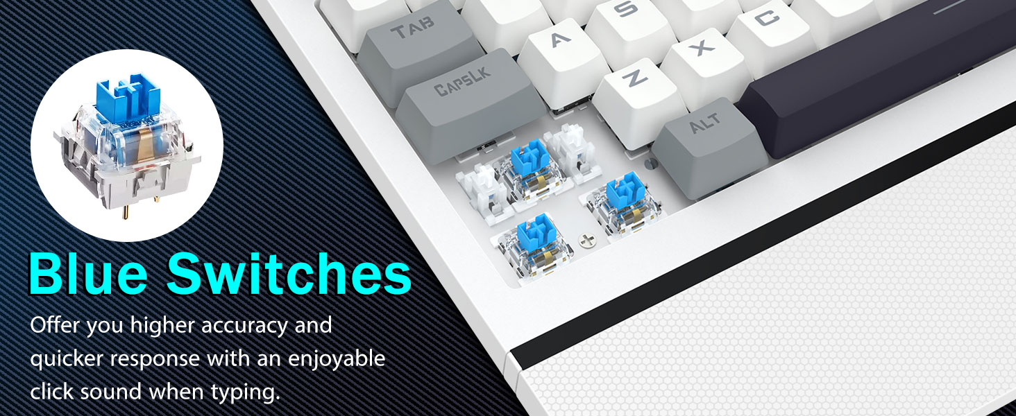 【საპასუხო ლურჯი გადამრთველები ზუსტი აკრეფისთვის】ჩვენი კომპიუტერის კლავიატურა აღჭურვილია ცისფერი ჩამრთველებით, რომლებიც უზრუნველყოფენ ელვისებურ - სწრაფი რეაგირების დროს და გასაოცარ სიზუსტეს. კლავიშის ყოველი დაჭერა იძლევა დამაკმაყოფილებელ დაწკაპუნების ხმას, რაც აძლიერებს აკრეფის გამოცდილებას. გასაღების უფრო ღრმა გადაადგილებით, უფრო ძლიერი გამოხმაურებით და კლავიშების უფრო ფართო დაშორებით, აკრეფა არა მხოლოდ უფრო ზუსტი, არამედ ბევრად კომფორტულია. თუ ამ ტაქტილური, „დაწკაპუნებული“ შეგრძნების მოყვარული ხართ, ჩვენი კლავიატურა თქვენთვის საუკეთესო არჩევანია.