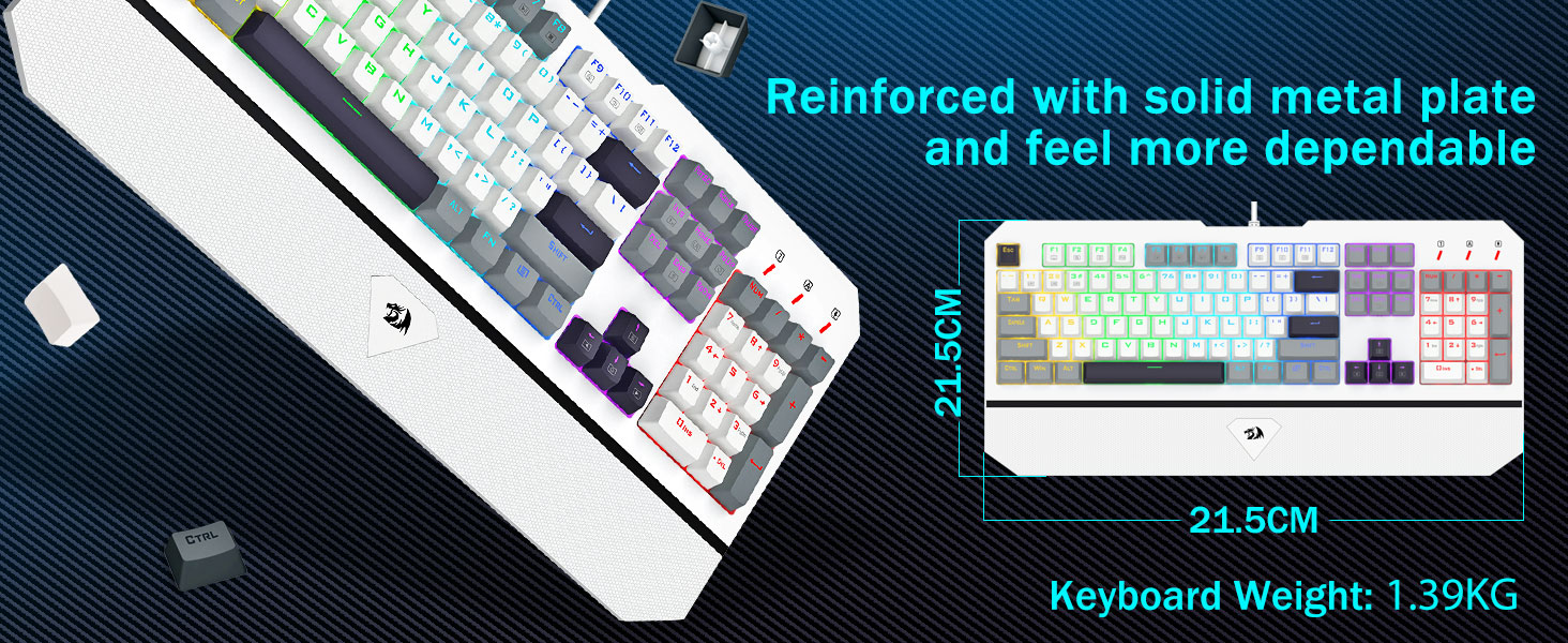 【მაღალი 104 კლავიატურის სრული ზომის კლავიატურა】დამზადებულია უმაღლესი კლასის ლითონის შენადნობით და ABS მასალით, კლავიატურის პანელი ძალიან გამძლეა, გამძლეა ნაკაწრების მიმართ. მოოქროვილი USB კონექტორი უზრუნველყოფს სტაბილურ, საიმედო კავშირს თამაშის საბოლოო შესრულებისთვის. 1,39 კგ-ს იწონის, ეს კლავიატურა იგრძნობა როგორც მყარი ავზი თქვენს ხელში, რაც უზრუნველყოფს შეუდარებელ სტაბილურობას გამოყენების დროს.
