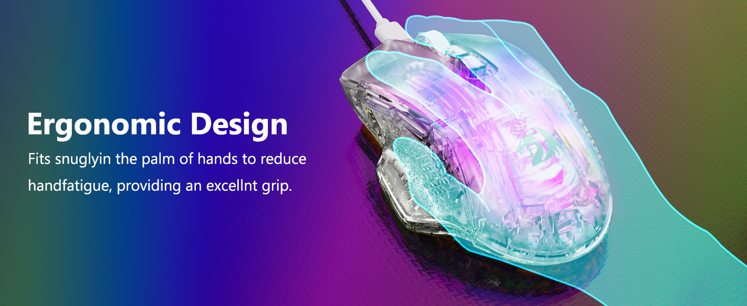 თაგვი ისეთი ფორმისაა, რომ ბუნებრივად მოერგოს ხელში, ხელს უწყობს ხანგრძლივ გამოყენებას ზედმეტი დატვირთვის გარეშე. მისი სტრუქტურა იძლევა კომფორტული მოჭერის სტილებს, მათ შორის პალმის, კლანჭის და თითის წვერზე.