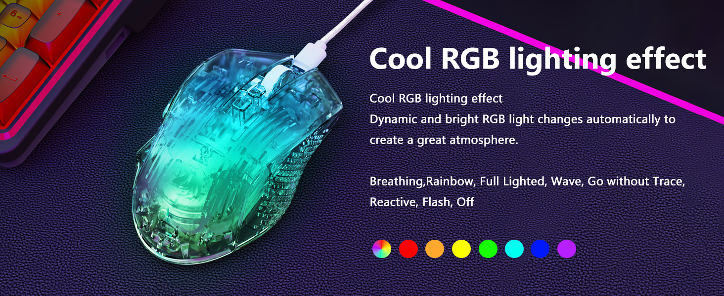 მაუსი მოიცავს რვა RGB განათების ეფექტს, რომელიც აძლიერებს ვიზუალურ მიმზიდველობას შესრულებაზე გავლენის გარეშე. მომხმარებლებს შეუძლიათ განათების რეჟიმებს შორის გადართვა, რათა შეესაბამებოდეს მათ დაყენებას ან პირად პრეფერენციებს.