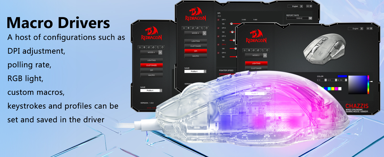 რეგულირებადი DPI დონეები საშუალებას გაძლევთ დააკონფიგურიროთ მომხმარებლის პრეფერენციებზე დაყრდნობით, რაც მას შესაფერისს ხდის თამაშის სხვადასხვა ჟანრებსა და სამუშაო პროცესებს.