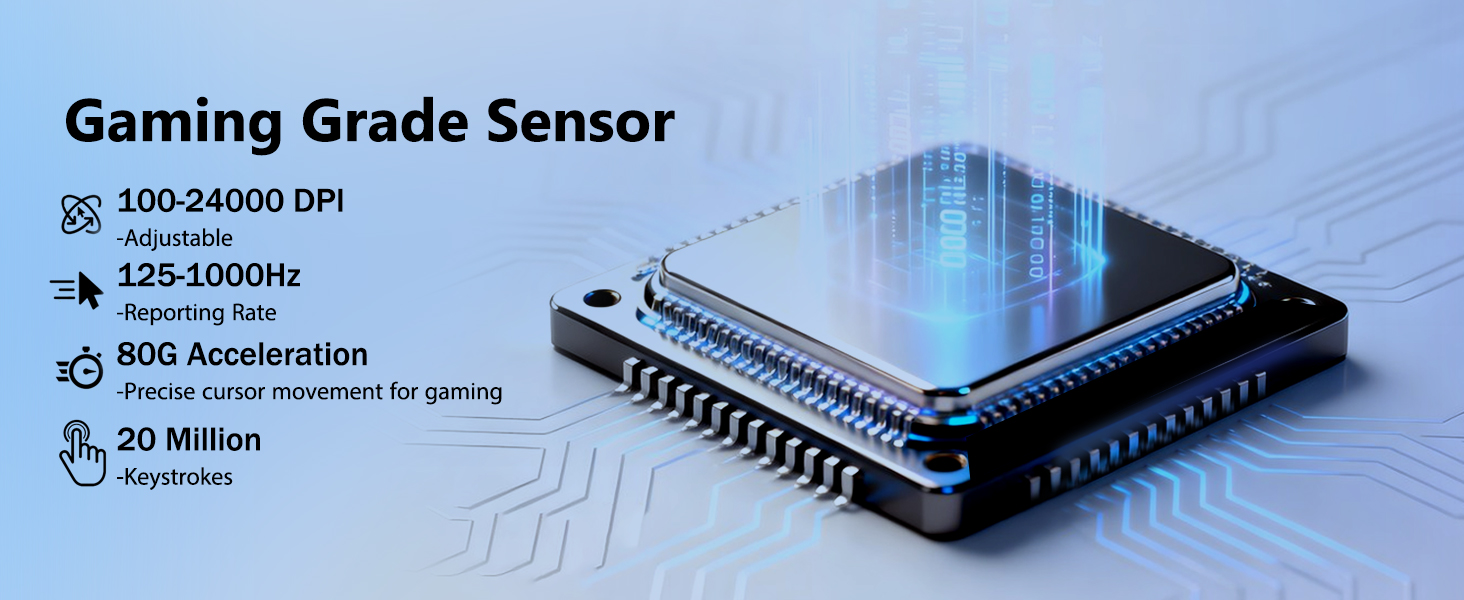 მაუსი აღჭურვილია მოწინავე ოპტიკური სენსორით, რომელსაც შეუძლია მიაღწიოს 24000 DPI-მდე. ეს საშუალებას აძლევს მომხმარებლებს შეცვალონ მგრძნობელობა სხვადასხვა სცენარის მიხედვით, თამაშებში ზუსტი დამიზნებიდან დაწყებული კურსორის სწრაფ მოძრაობამდე დიდ ეკრანებზე.