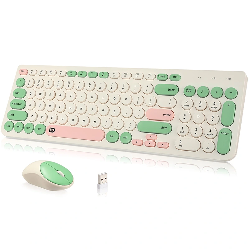 უსადენო კლავიატურა და მაუსი 2.4 გჰც კომბინირებული, რეტრო საბეჭდი მანქანა მრგვალი კლავიშებით, 104 კლავიშები სრული ზომის USB მშვიდი მაუსი დესკტოპისთვის, ლეპტოპისთვის და კომპიუტერისთვის