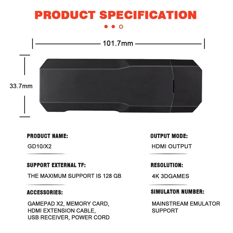4K HD გამომავალი:4K რეზოლუციით გამოსვლის უნარი უზრუნველყოფს, რომ სათამაშო ვიზუალი იყოს მკაფიო, მკაფიო და ძლიერი, რაც უზრუნველყოფს მოდერნიზებულ სათამაშო გამოცდილებას რეტრო თამაშებისთვისაც კი.